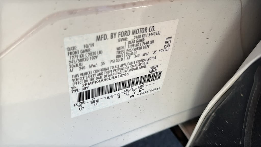 TECHO PANORÁMICO VISTA Elimina los rieles laterales plateados de serie para el portaequipajes, apertura/cierre eléctrico con cortina eléctrica, la luz de techo LED de serie de la segunda fila se sustituye por 2 luces individuales, interruptor situado en cada bolsillo de las asas, LLANTAS: 20 llantas de aluminio mecanizado brillante con acabado en acero inoxidable oscuro de alta calidad, Neumáticos: 245/50R20 AS, FORD CO-PILOT360 ASSIST+ Asistencia de dirección evasiva, Sistema de navegación con pantalla táctil activado por voz, función de zoom con los dedos, SiriusXM Traffic & Travel Link, a, Los servicios no están disponibles en Alaska y Hawái, Los servicios de audio y datos de SiriusXM requieren una suscripción que se vende por separado o como paquete a través de Sirius XM Radio Inc. Si decide continuar con el servicio tras el periodo de prueba, el plan de suscripción que elija se renovará automáticamente a partir de entonces y se le cobrará según el método de pago elegido a las tarifas vigentes en ese momento. Se aplican tasas e impuestos. Para cancelar, debe llamar a SiriusXM al 1-866-635-2349, Consulte el acuerdo con el cliente de SiriusXM para conocer los términos completos en www.siriusxm.com. Todas las tarifas y la programación están sujetas a cambios. Sirius, XM y todas las marcas y logotipos relacionados son, MOTOR: TWIN-SCROLL 2.0L ECOBOOST con tecnología de arranque y parada automáticos (STD). El Ford Titanium, con exterior en Star White Metallic Tri-Coat e interior en Medium Soft Ceramic, cuenta con un motor de 4 cilindros con 250 CV a 5550 rpm*.